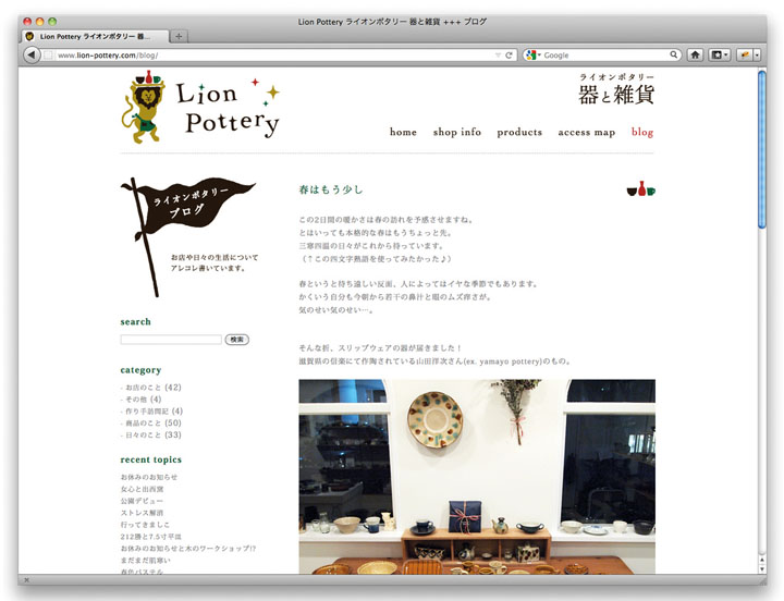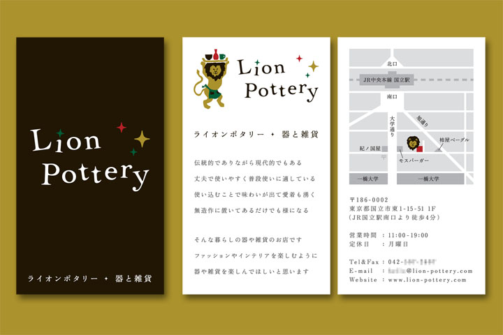 MEDIUM: Logo, Cards, Paper Napkins, Website CLIENT: Lion Pottery (Tokyo, Japan) YEAR: 2011-2012